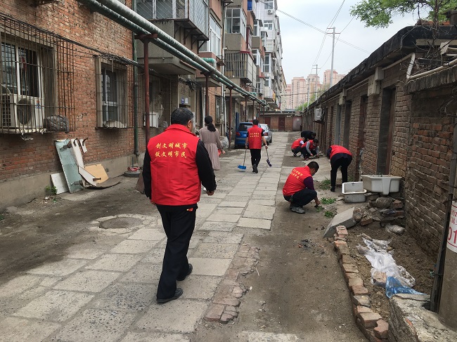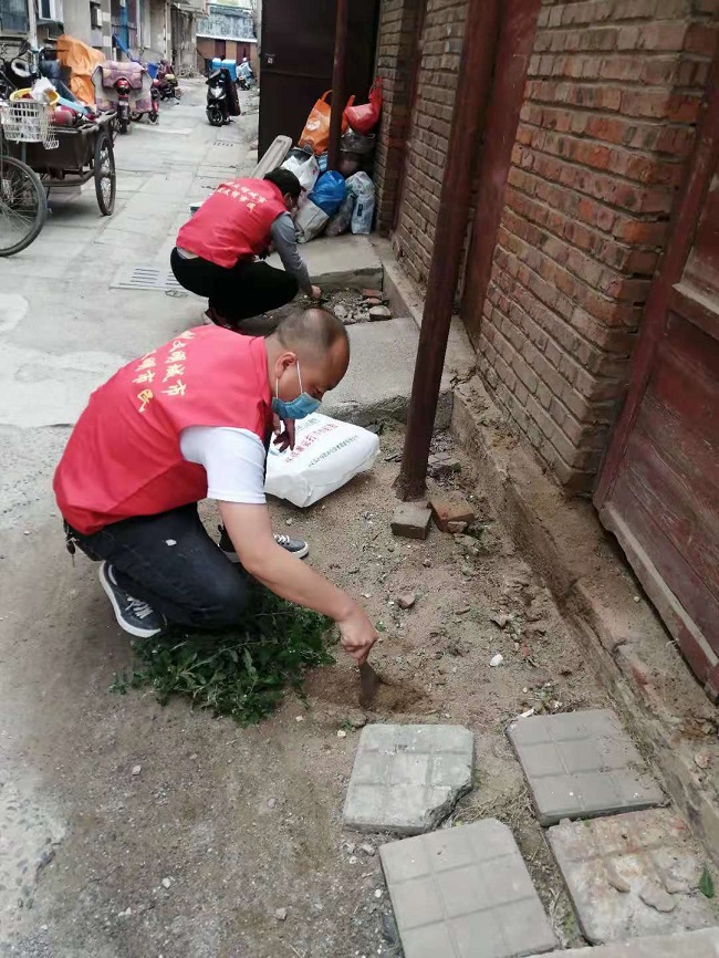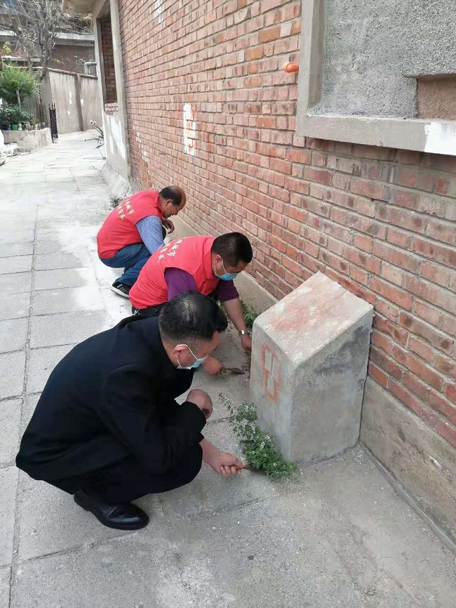 活動(dòng)中,按照事前的準(zhǔn)備和分工,黨員干部身著統(tǒng)一的志愿服裝,發(fā)揚(yáng)不怕臟,不怕累的優(yōu)良作風(fēng),團(tuán)結(jié)協(xié)作,拿著笤帚、畚斗、鏟子、噴壺等工具,集中清理墻面上的小廣告,雜草等,以實(shí)際行動(dòng)改善居民的環(huán)境面貌。