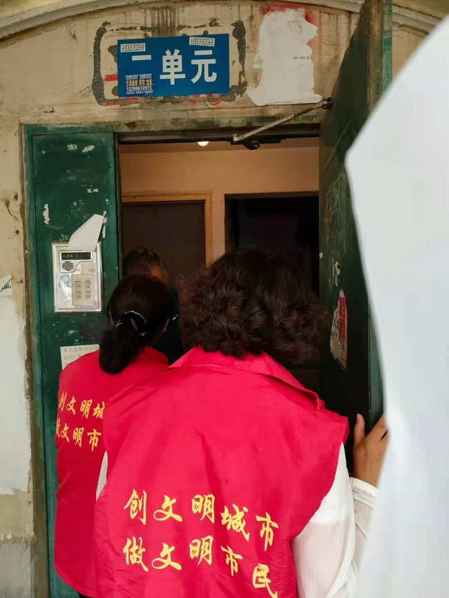 到鑫海苑社區(qū)入戶宣傳接打疫苗