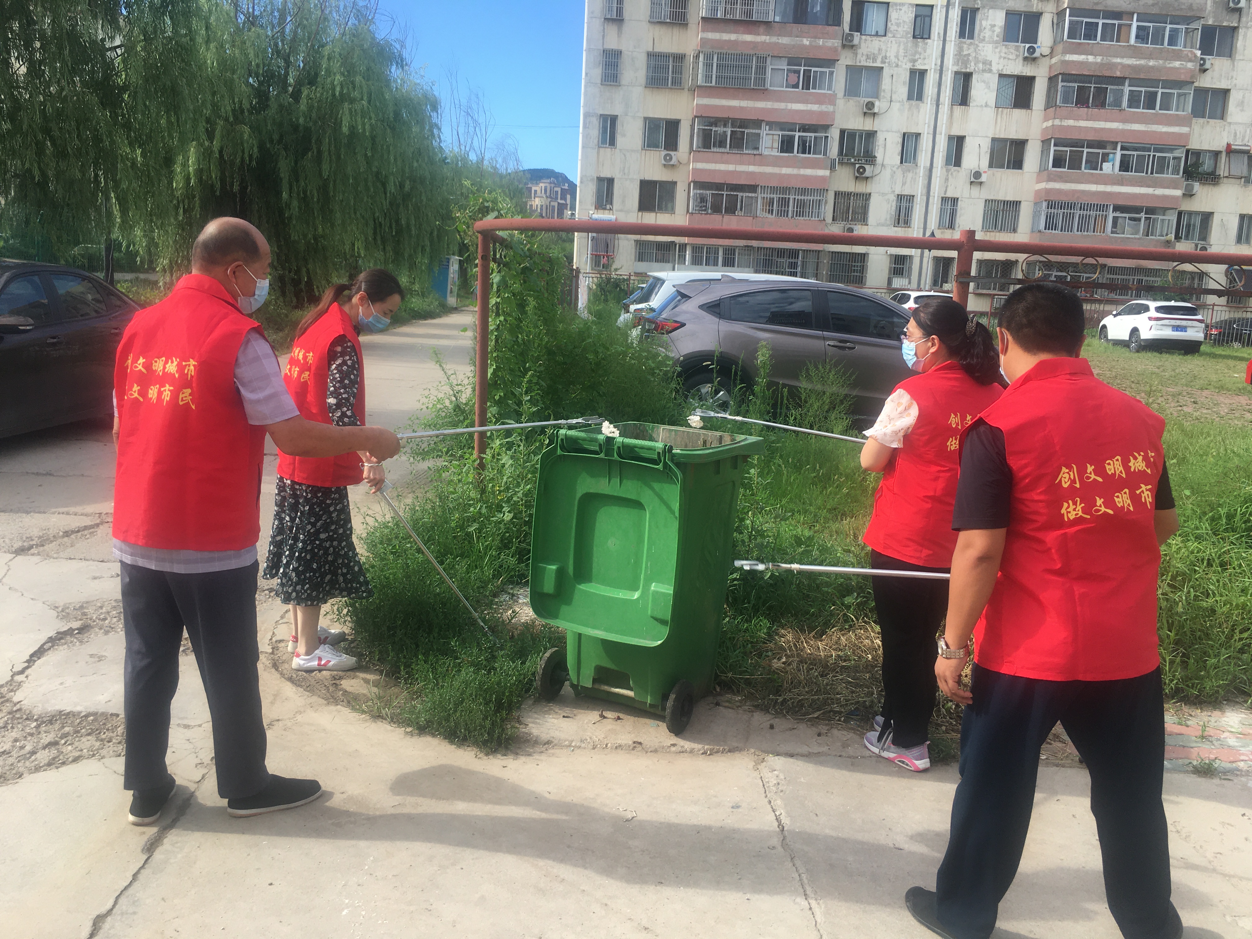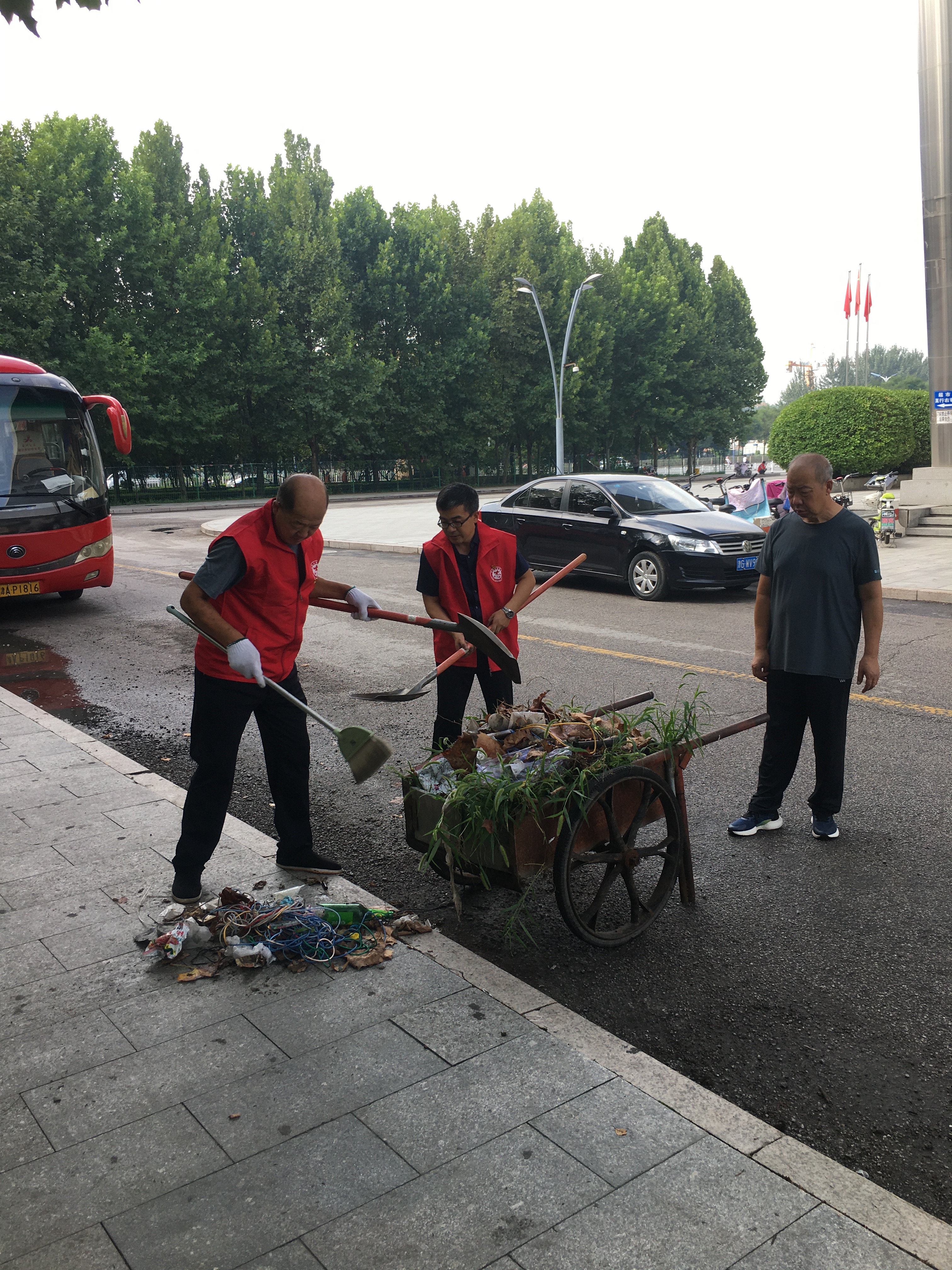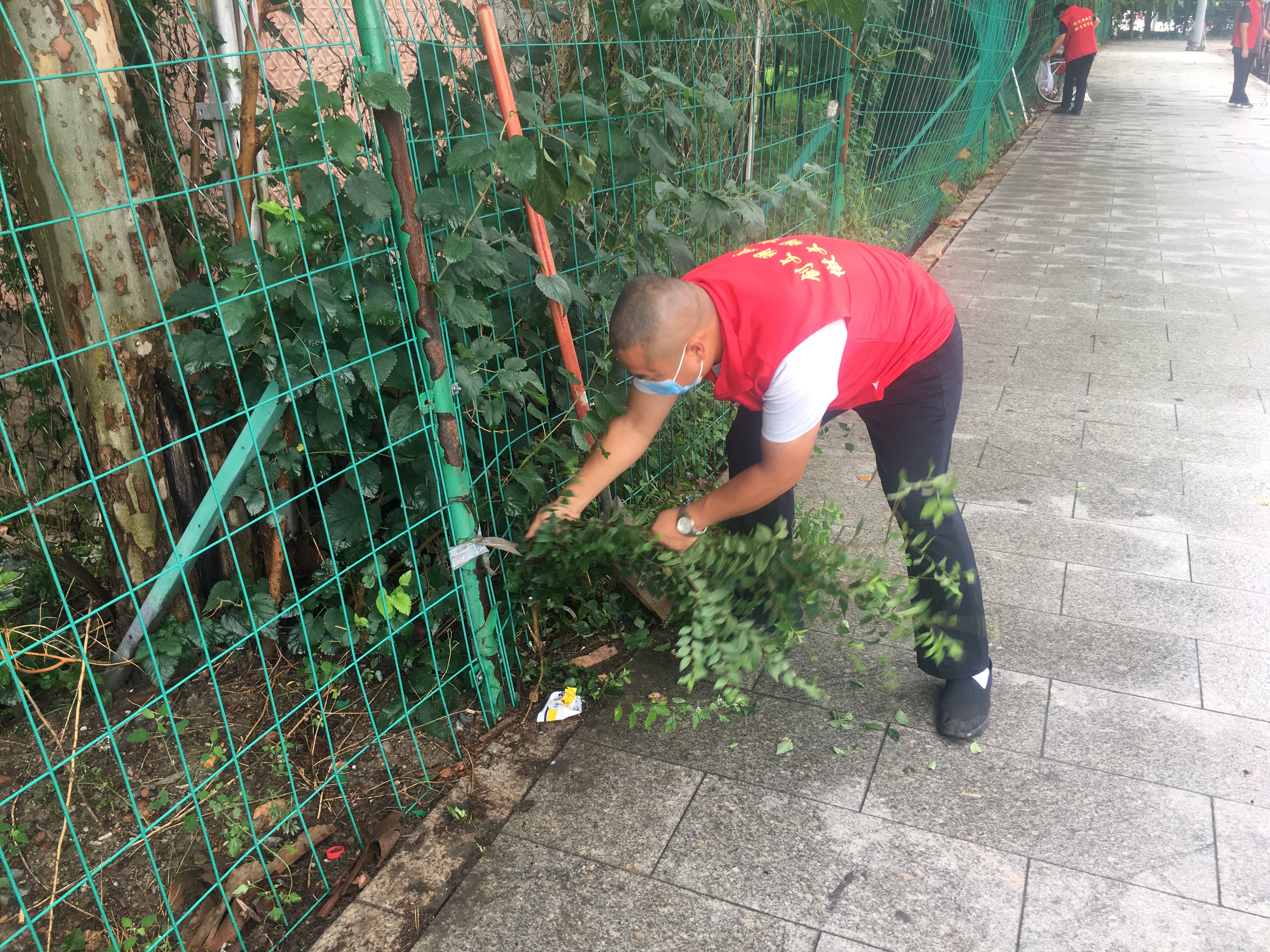 8月19日下午,組織志愿者到鑫海苑社區(qū)開展創(chuàng)文創(chuàng)衛(wèi)環(huán)境清整活動(dòng)。