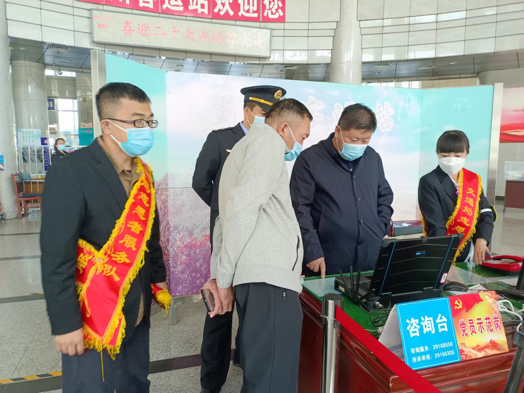 在客運(yùn)站,陳樹(shù)先局長(zhǎng)現(xiàn)場(chǎng)查看了進(jìn)站口測(cè)溫掃碼、信息登記、售票大廳等情況,詢問(wèn)了解當(dāng)前客流、疫情防控、安全生產(chǎn)等工作開(kāi)展情況,對(duì)我站的疫情防控工作給予充分肯定。